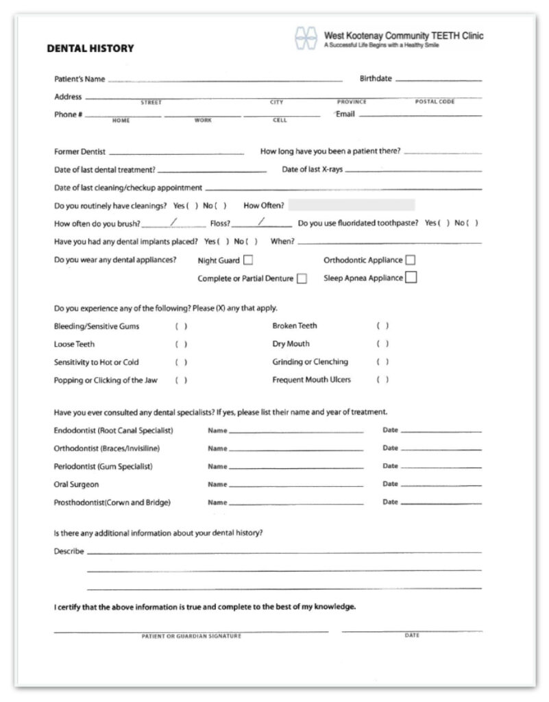 To receive our dental services, you must complete an application and verification process. This includes completing four forms and verifying that your family income is less than $70,000/year.